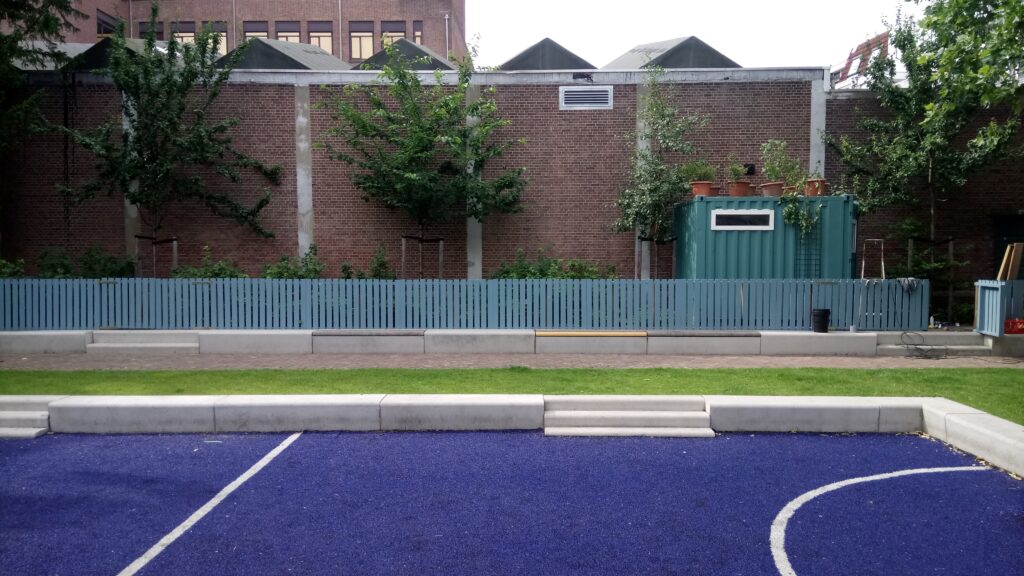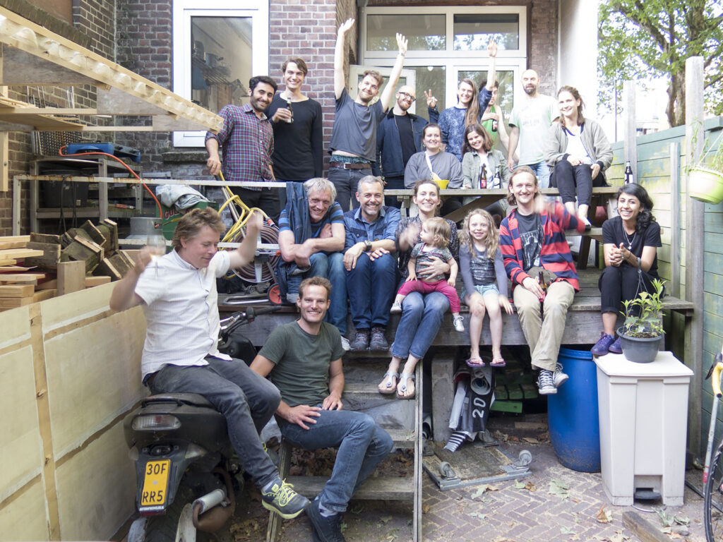 Die activiteiten vinden vooral plaats op het plein. De schutting van de achtertuin kan opengedraaid worden, waardoor plein en achtertuin één ruimte worden. Aan het plein staat een container die wordt verhuurd aan buurtbewoners met een hobby. Nu is ‘verhuurd’ een groot woord: de fietsenmakers van de ‘Doe-het-zelf-werkplaats’ die er nu in zit, zijn krakers die principieel tegen het betalen van huur zijn. Zij helpen wijkbewoners om zelf hun fiets op te knappen, dus – redeneren zij – betalen ze al in maatschappelijk rendement. Omdat er toch moet worden bijgedragen aan de kosten en het onderhoud van het pand en de gemeenschap, betalen zij (na een interessante mailwisseling) 50 euro per maand aan ‘onkostenvergoeding’.