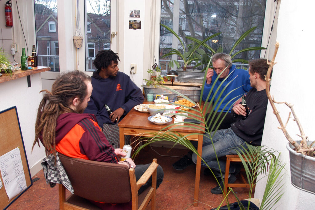 Ook het pand zelf onderging de nodige veranderingen door de jaren heen. Eerst was er een gedeelde woonkamer en keuken, maar later hebben de toenmalige bewoners Luuk, Gaia en Lonneke de ruimtes zo verbouwd dat ieder een eigen keukenvoorziening heeft. Als ruimtelijk vormgevers en kunstenaars is een beetje verbouwen voor hen geen probleem, ook al is het slechts tijdelijk.