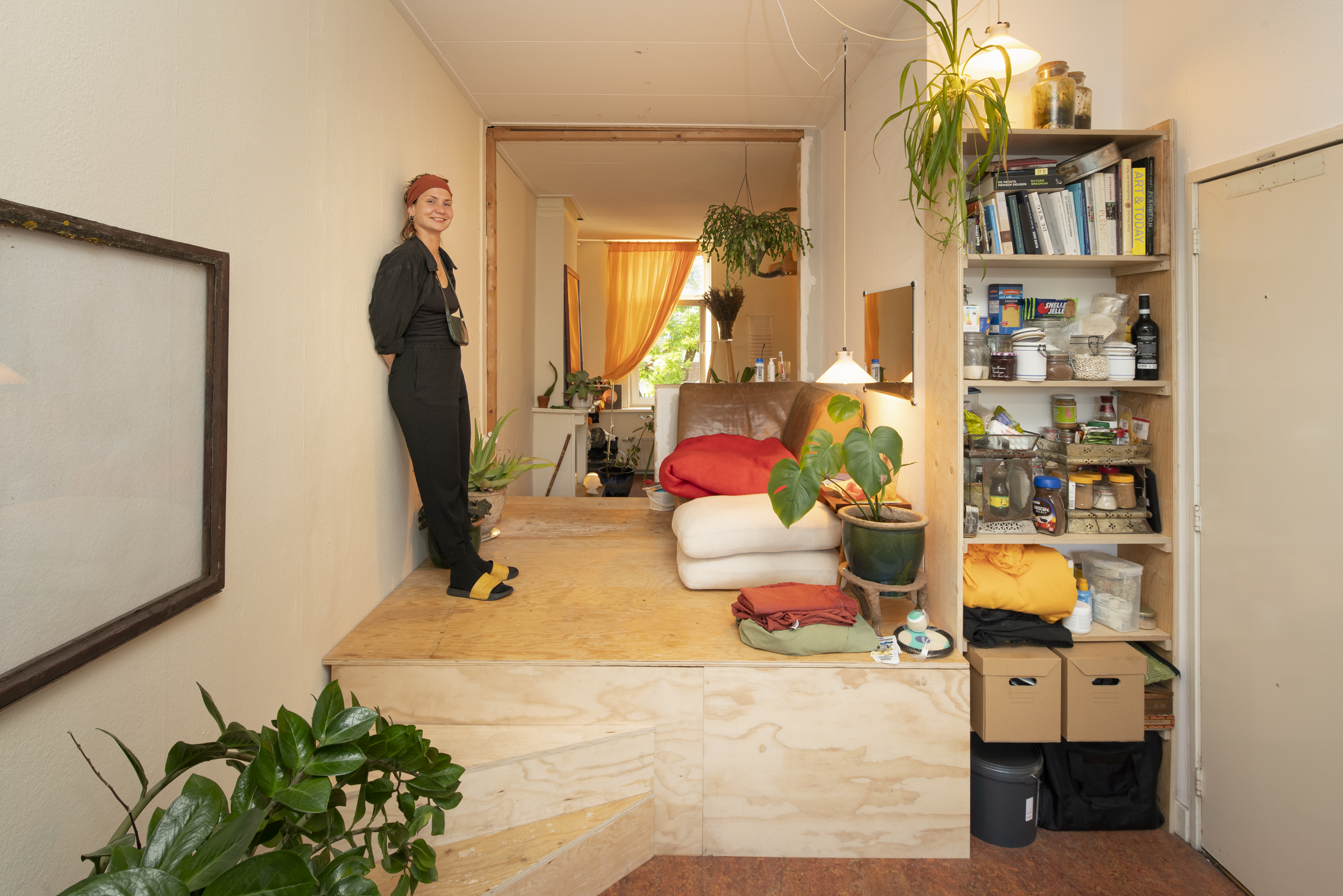 “Ik besef wat een geluk ik heb dat ik hier al zes jaar woon, terwijl vrienden van mij echt heel veel moeite hebben om een huis te vinden vanwege de situatie op de woningmarkt.” Ik kwam hier ooit toen ik ging studeren aan de Willem de Kooning Academie. Mijn vader had een vriend die kunstenaar was in Rotterdam en die kende Erik van Stad in de Maak. Dit kwam net vrij en ik was de eerste bewoner.