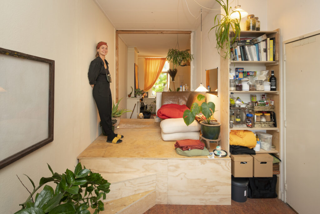 In een van de commonsruimtes van Stad in de Maak aan de Pieter de Raadtstraat vind je de Kiosk. Philippa …