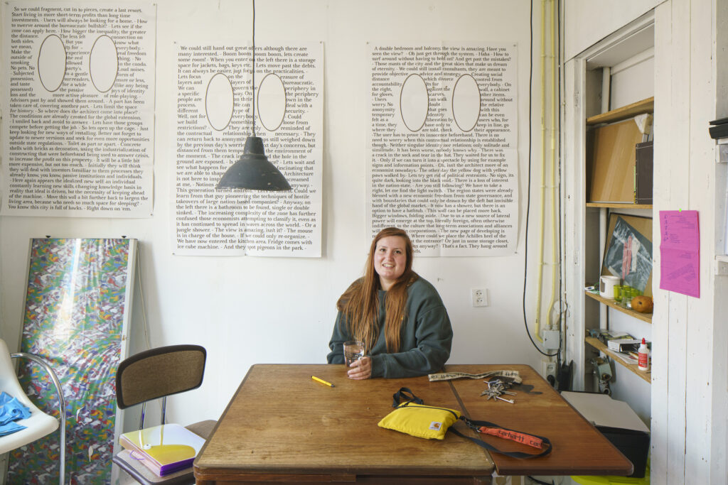Het voelt veilig om onderdeel van dit netwerk te zijn. Ook al is het natuurlijk nog steeds tijdelijk en onzeker. De veiligheid zit ‘m niet persé in de woning, maar vooral in de netwerken rondom deze plek. Er zijn andere architecten om mee samen te werken. Verder ervaar ik support in mijn gevecht om een permanente verblijfsvergunning te krijgen. Ik heb nu een kunstenaarsvisum, waarbij ik veel moet kunnen aantonen om te mogen blijven. Het is bevrijdend dat bij Stad in de Maak niet alles gemonetariseerd wordt en dat ik soms kan werken in ruil voor mijn huur. Bovendien gaat het geld van de huur naar projecten om de stad toegankelijk te houden voor mensen zoals ik en verdwijnt het niet in de zakken van een pandjesbaas.”